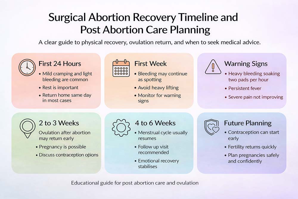Emotional recovery after surgical abortion is a normal and expected part of healing. Understanding these changes helps women feel reassured during surgical abortion recovery and ongoing post abortion care.